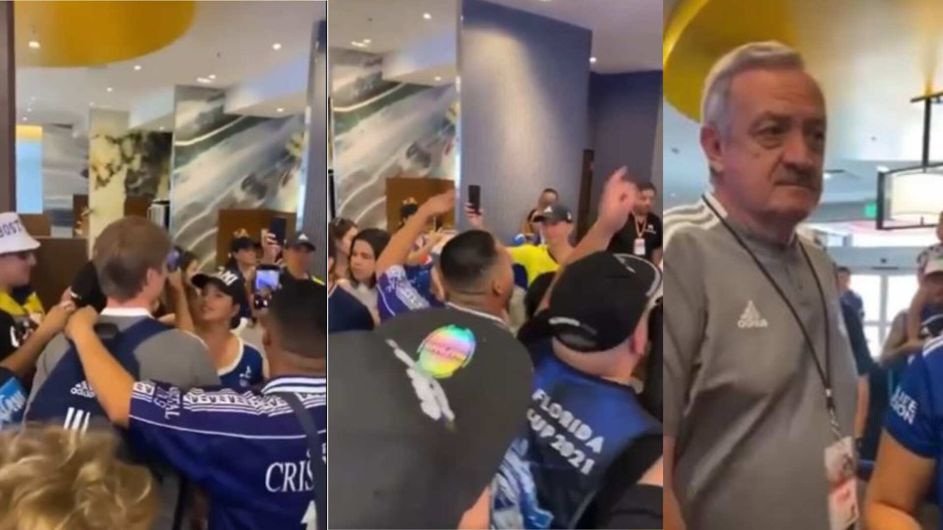 En las imágenes captadas por el usuario de Twitter @MillonariosNY y difundidas por @LPEmbajadora en Twitter, se logra ver al defensor Andrés Llinás firmando autógrafos, mientras el presidente, Enrique Camacho, es señalado por los aficionados.