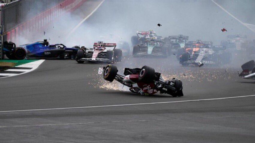 El principal involucrado es Guanyu Zhou, piloto de la escudería de Alfa Romeo, que alcanzó a dar una vuelta de campana y recorrer varios metros boca abajo. George Rusell, piloto de Mercedes y uno de los implicados en el choque, salió corriendo para ver si Zhou se encontraba bien.