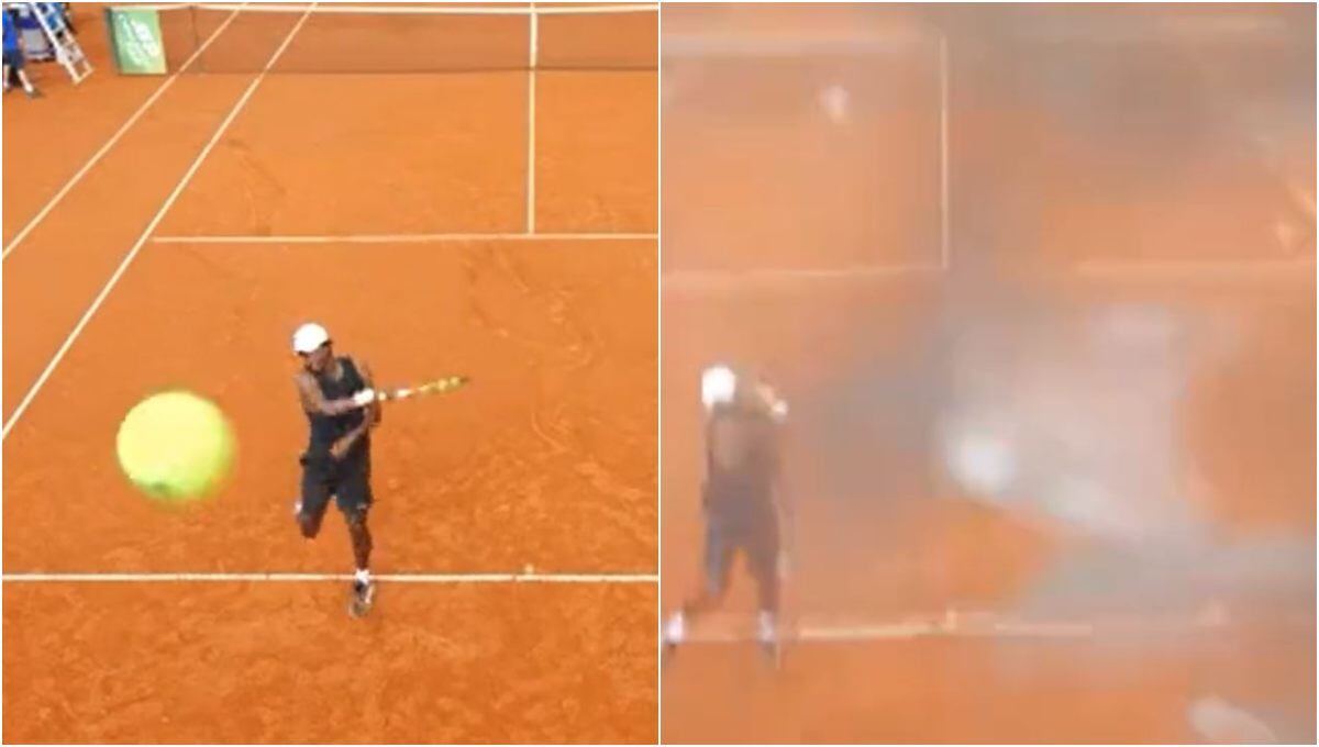 Luego de que le alcanzaron una nueva pelota para que sirviera, lo que hizo fue impactar la misma con su raqueta con una gran potencia y fue dirigida directo a la cámara de transmisión.