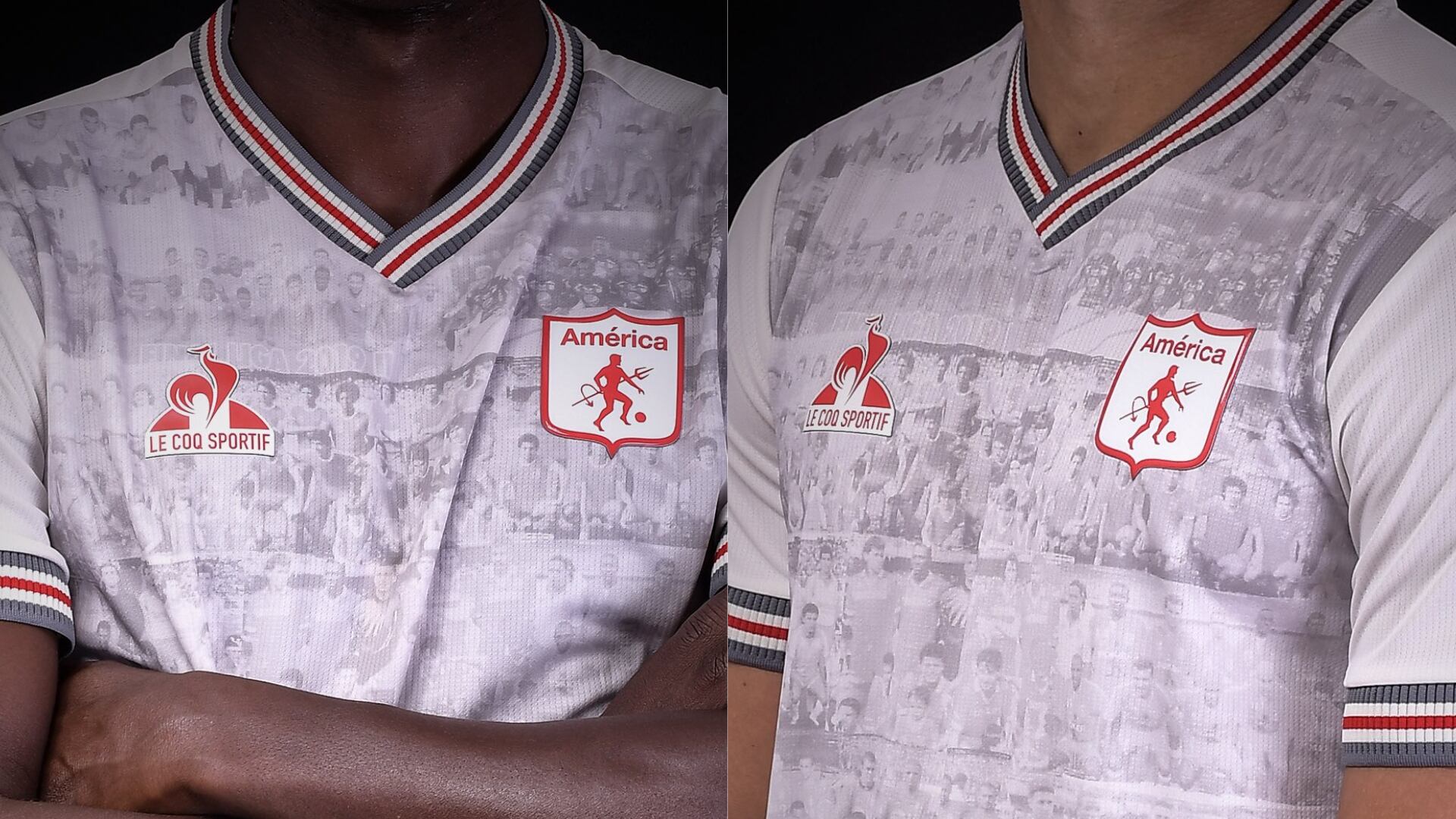 La camiseta presenta un novedoso diseño en el que se encuentra impregnada la historia del conjunto vallecaucano en el balompié nacional. De color gris y cuello en ‘v’, esta cuenta en su parte frontal con las fotos de los 15 equipos que ganaron sus títulos de liga colombiana.