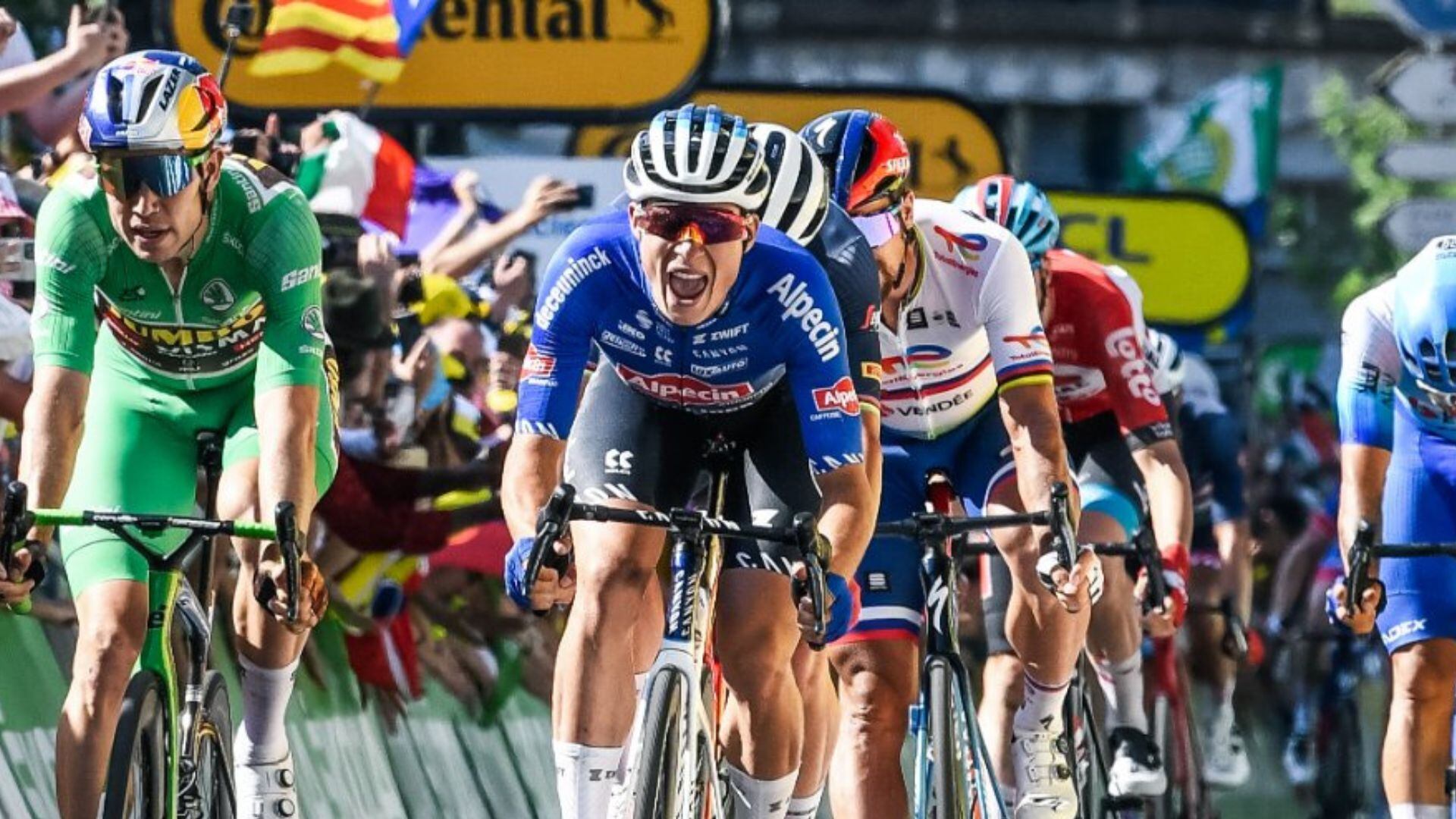 En los últimos instantes, Philipsen se llevó el triunfo con una gran remontada en la que Van Aert se quedó a las puertas de la victoria durante un día que trajo muy malas noticias para su equipo.
