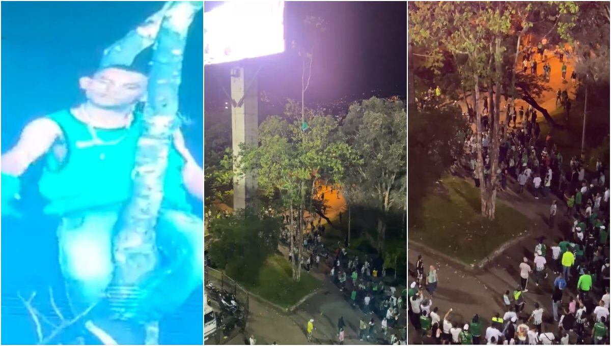 Así descendió el hombre del árbol en el partido entre Nacional y Millonarios