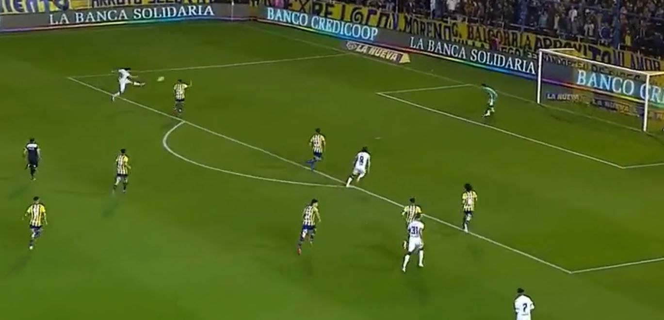 Cuando se jugaba el minuto 23, Renzo López metió un pase bombeado al sector contrario y allí, en el borde del área, apareció el jugador que convirtió una verdadera joya.