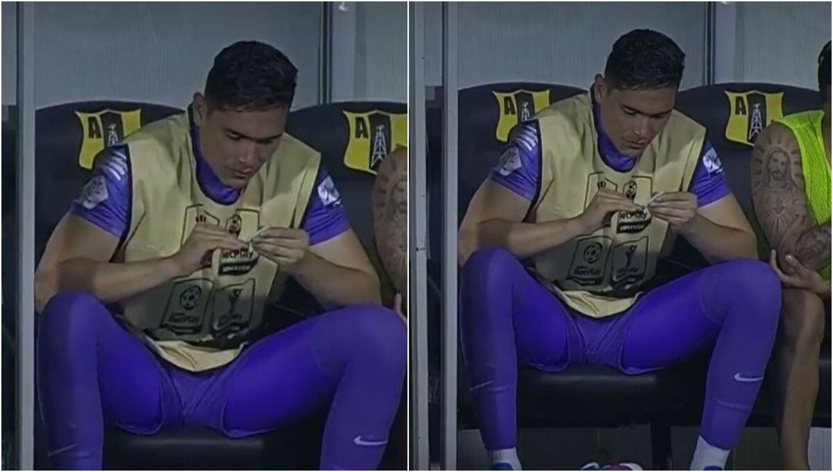 Aldair Quintana fue enfocado y estaba muy concentrado en el arreglo de sus uñas y no en lo que pasaba en la cancha.