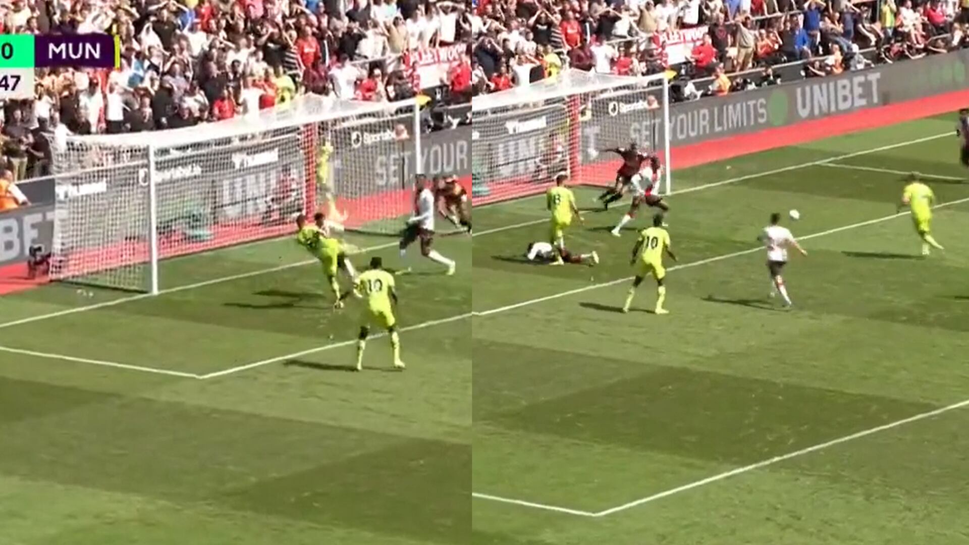 En primer lugar, Bruno habilitó de cabeza a Elanga, quien sobre la línea final sacó un disparo fuerte que el arquero rebotó. El balón le quedó al mismo portugués y sin pensarlo, le entró de volea, pero el lateral Walker estuvo atento y se interpuso en el camino del balón.