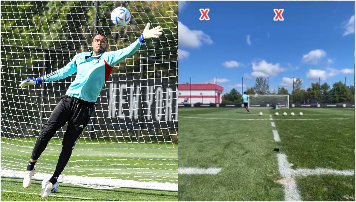 La idea del ejercicio era ver cuál de los dos atacantes tenía mejor puntería y lograba anotar más goles entre el jugador del Leeds de Inglaterra y el del CSKA de Moscú, pero el que se terminó robando el show fue el guardameta de Millonarios.