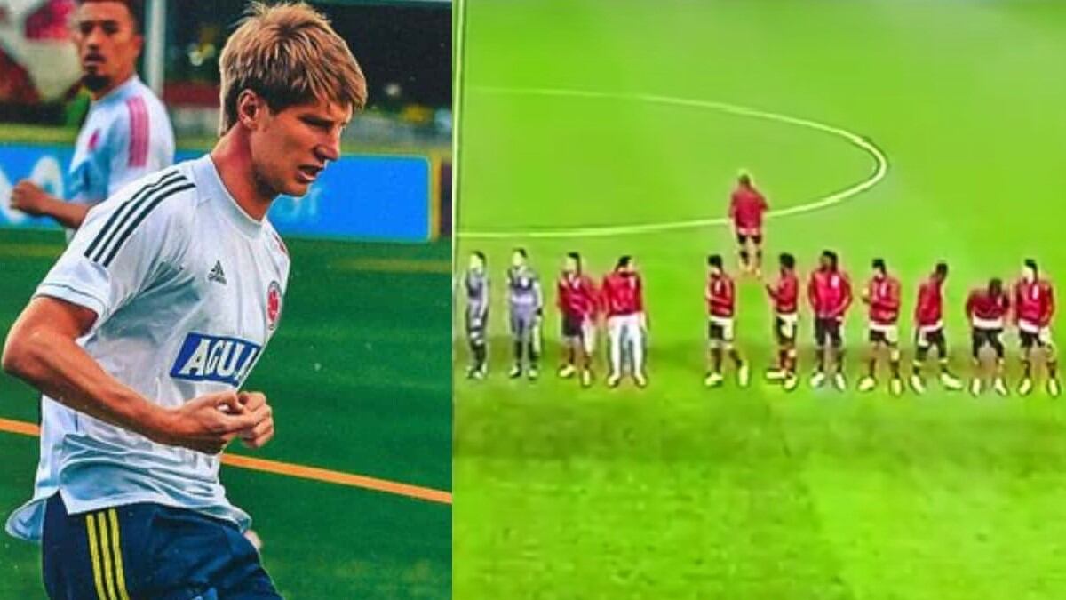 Luego de que culminaran los actos de protocolo, con el himno nacional de Colombia, Andrés Llinás corrió de inmediato hacia el anillo central del campo; además, hasta dio unos saltos para sobrellevar la emoción. Mientras todos se quedaban en el saludo, el zaguero tuvo que retornar inmediatamente.