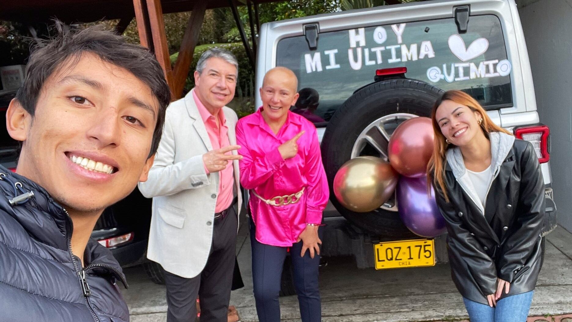 El propio Egan Bernal, entusiasmado y agradecido con sus seguidores, dio a conocer la noticia y además decoró su vehículo de una forma muy especial. “Hoy, mi última quimio”, se ilustraba en la ventana trasera del auto, con globos de colores.