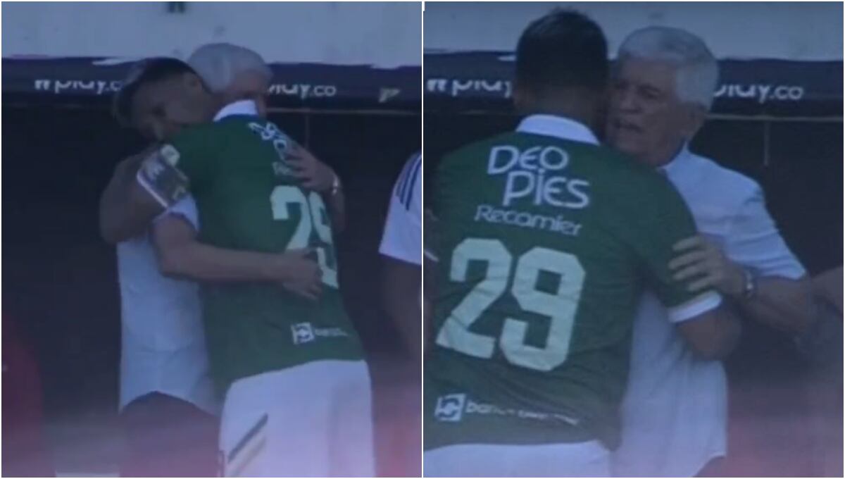 Fue después de los actos de protocolo y antes de que rodara la pelota que el atacante del cuadro vallecaucano se acercó a su antiguo entrenador para darle un enorme abrazo que emocionó a muchos.
