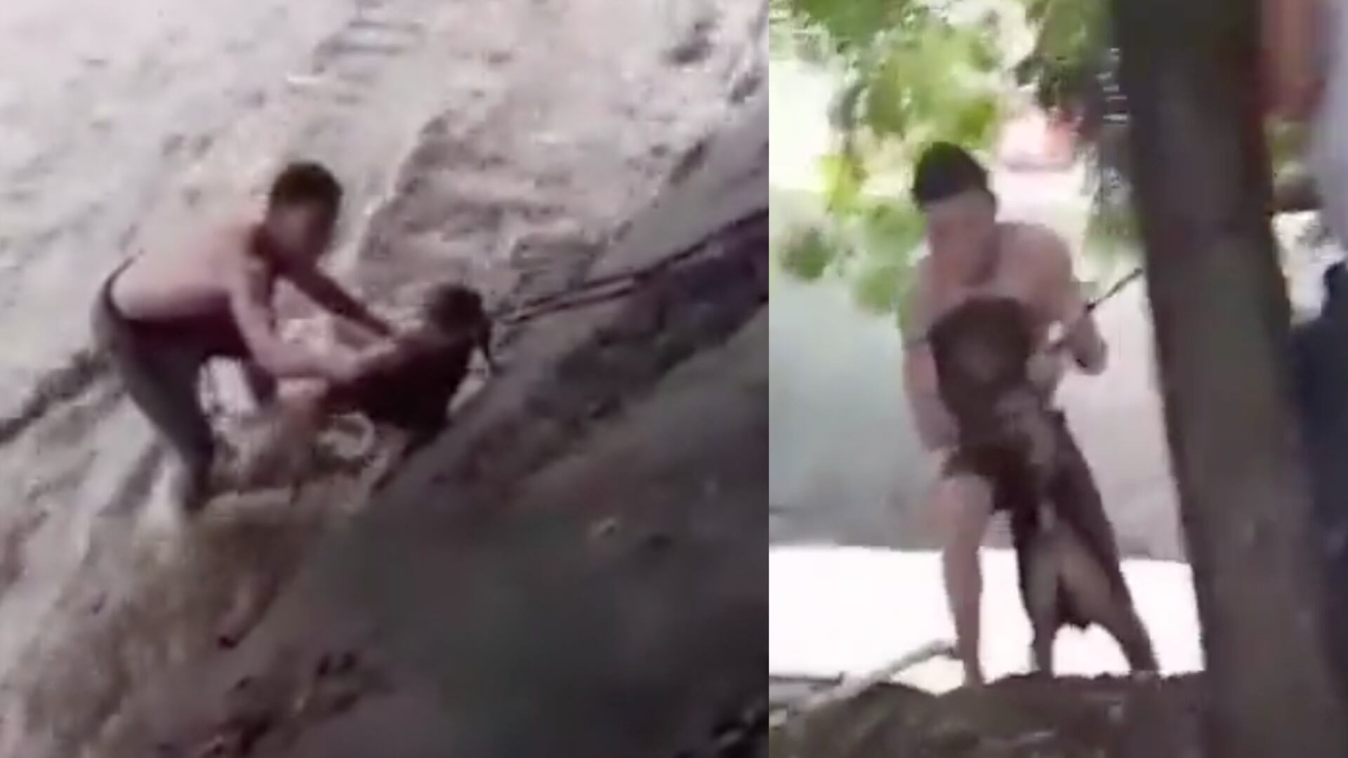 Por fortuna, el pugilista lo logró y apoyado en la soga volvió a subir, esta vez con el animalito entre sus manos.