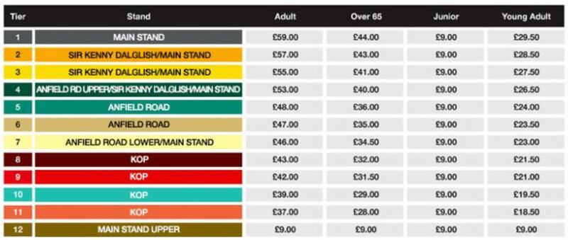 También hay que aclarar que, los precios van de acuerdo a la edad de las personas, las cuales están comprendidas entre adultos, mayores de 65 años, junior y jóvenes adultos. También existen diferentes precios para las personas con discapacidad y en la web de los ‘Reds’ también destacan que los precios para la Premier son los mismos para los juegos de la fase de grupos de Champions League.
