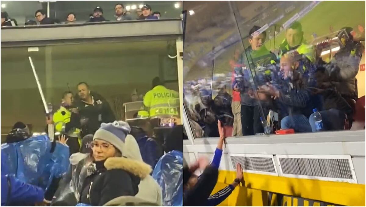 En varios videos publicados en las redes sociales se logra observar a algunos hinchas desahogando su enfado contra el hombre que maneja las filas del DIM.