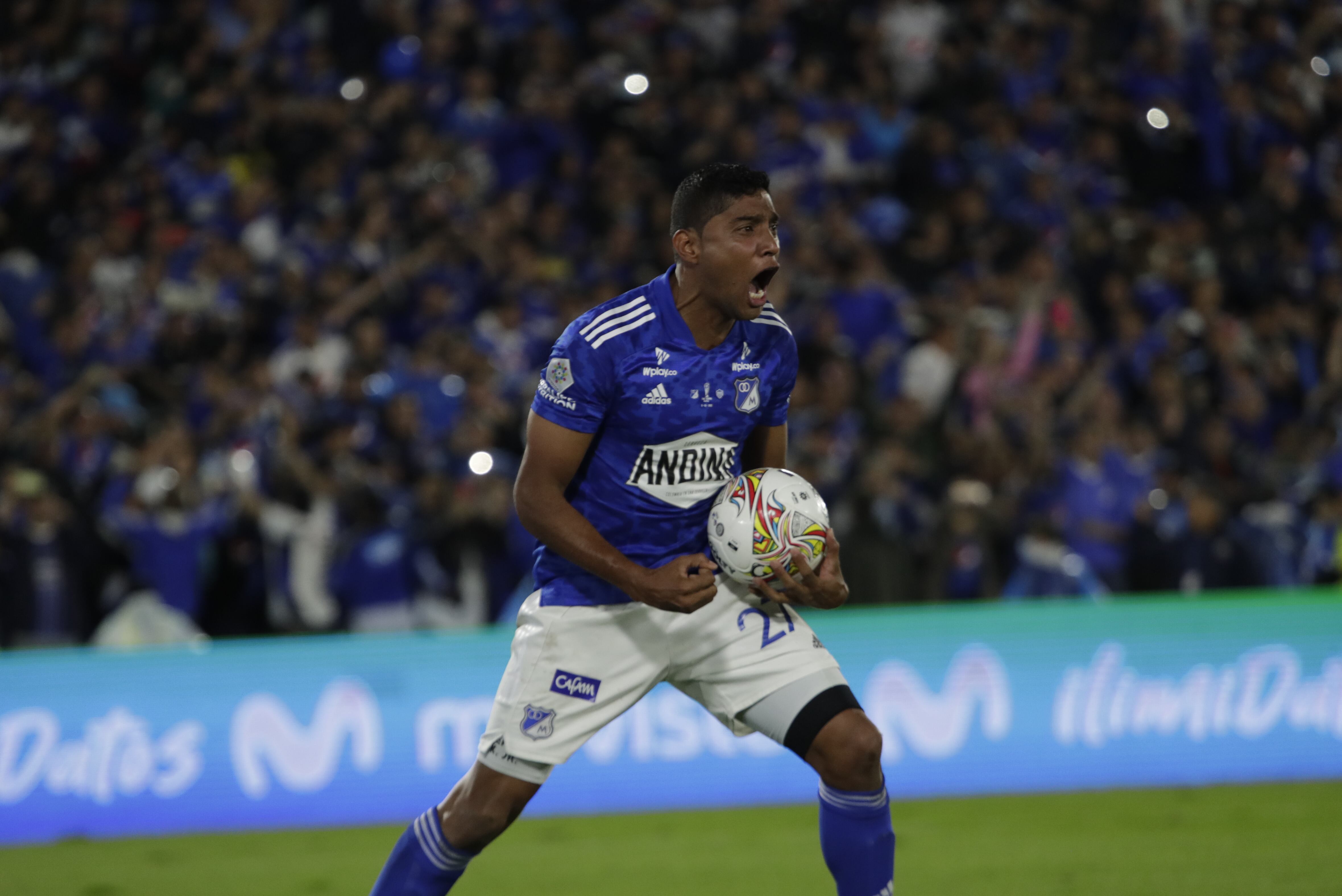 Tras un par de remates que provocaron grandes atajadas de Sebastián Viera, el árbitro Wílmar Roldán señaló un penalti a favor de Millonarios en el 17′. Gracias a un agarrón de César Haydar a Juan Pablo Vargas dentro del área, Roldán señaló el punto penal sin dudar.