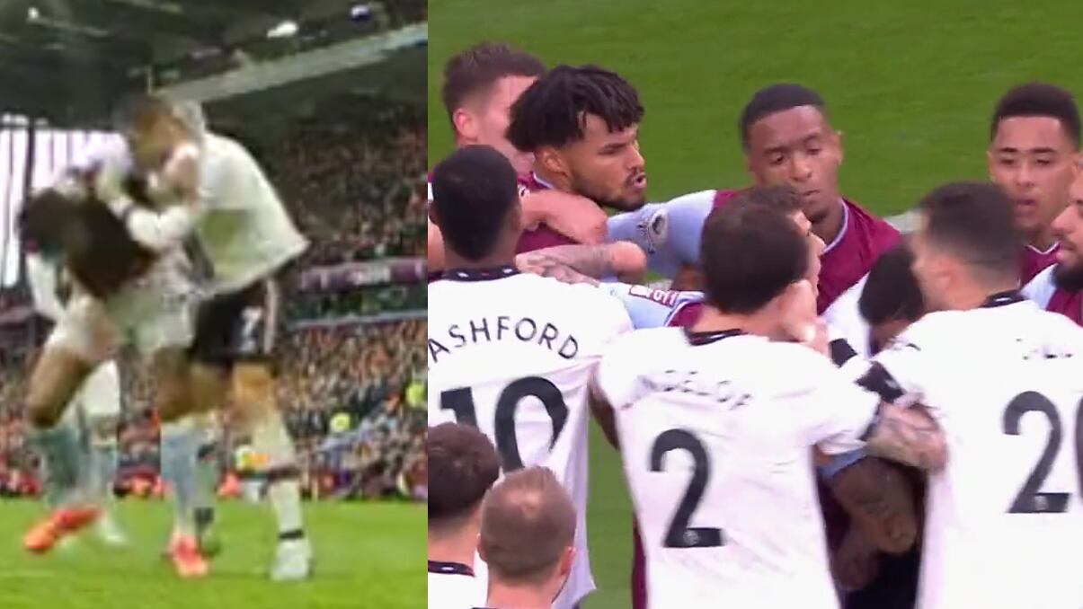 Repentinamente, se cruzó con Tyrone Mings, su marca personal dentro de la ‘zona peligrosa’. Ambos forcejearon en primera instancia, pero no se querían soltar.