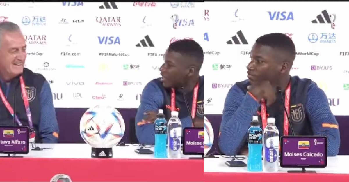 En la charla de la Selección de Ecuador con los medios, un periodista quiso poner en aprietos a Moisés Caicedo que efectivamente no supo cómo responder.