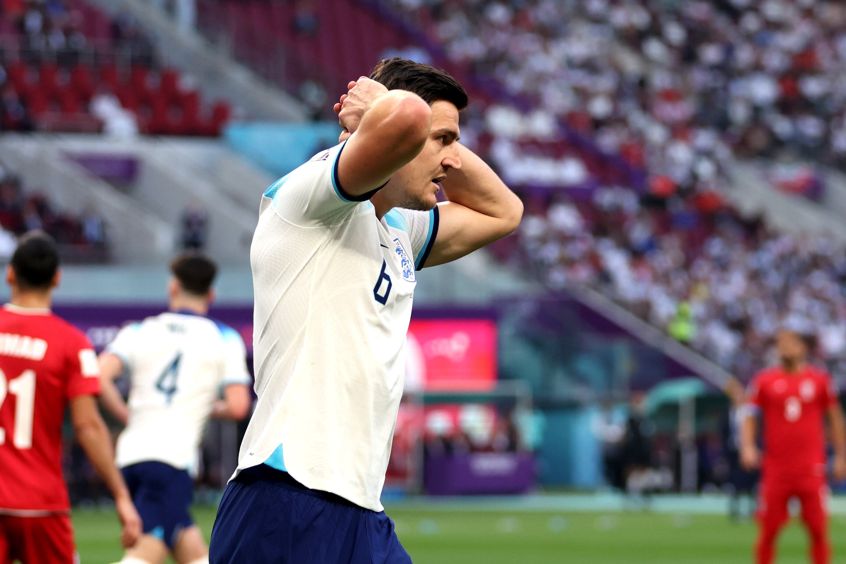 Aunque ahora es suplente en el Manchester United, Harry Maguire tiene toda la confianza por parte del cuerpo técnico de la selección de Inglaterra. En su afán por justificar su titularidad, el defensor juega con todo el ímpetu posible, al punto que ni cinco minutos habían pasado y por poco pitan penal.