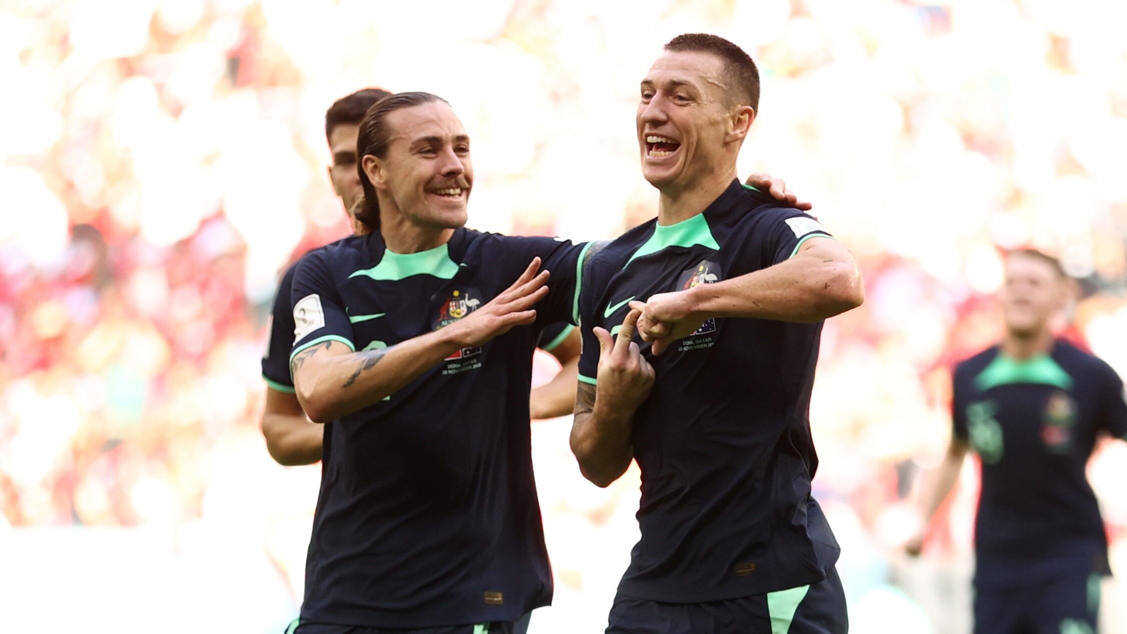 Tras un centro finito desde la banda izquierda, Craig Goodwin le cedió la pelota de gran manera a Duke, quien estuvo sobre el área y metió un cabezazo hermosísimo, para enmarcar, sobre el arco defendido por Tünez. La alegría fue protagonista en el Al Janoub Stadium.
