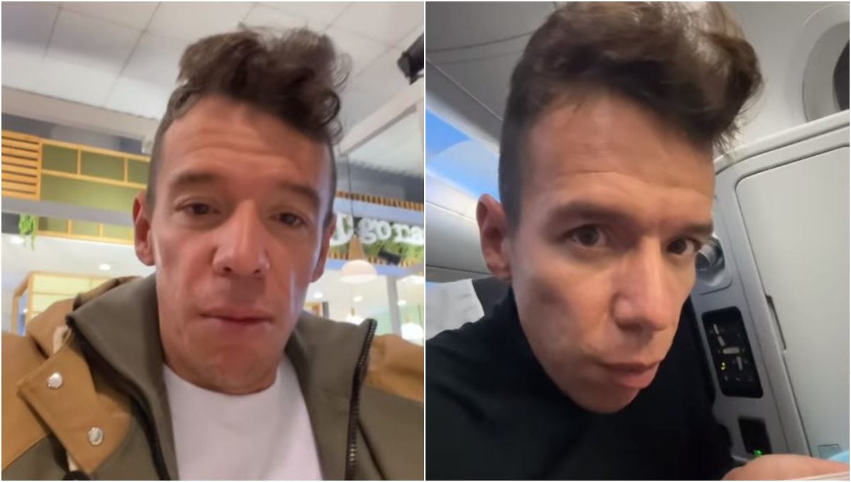 Rigoberto Urán nunca pierde su espontaneidad y en esta ocasión sorprendió a los demás pasajeros de un avión, además de sus seguidores de redes sociales, al almorzar calentado en la popular ‘coca’.