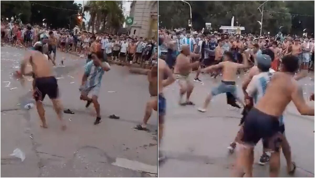 Un grupo de hinchas de Argentina protagonizaron una verdadera batalla campal en plena vía pública en medio de los festejos por la clasificación a la semifinal del Mundial Qatar 2022.
