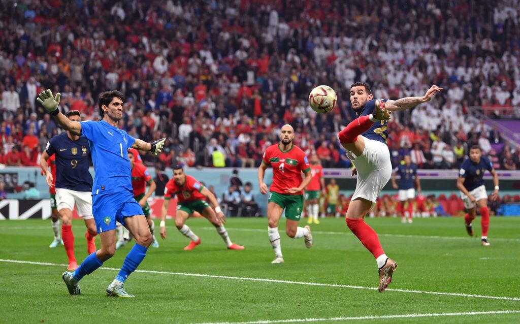 Un remate de media distancia de Azzedine Ounahi fue el primer aviso, pero la gran tocada en el marco rival llegó sobre el final del primer tiempo cuando Jawad El Yamiq se inventó una chilena dentro del área que golpeó contra la base del palo y la mano salvadora del guardameta francés.