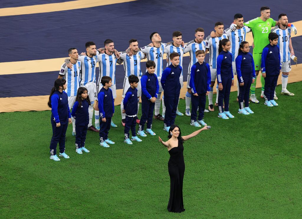 La mujer que llegó al país árabe a disfrutar de la Albiceleste, se vio sorprendida al ser invitada a última hora para entonar las notas de su país y esto la llenó de orgullo, pero aparte de esto fue noticia por un infortunado incidente.