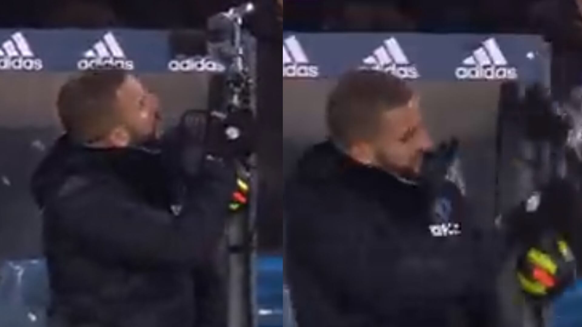 En medio del partido, exactamente en el minuto 27, Kyle Walker, lateral del City que estaba en el banco de suplentes, se paró. Tras pararse, a él pareció molestarle una cámara de la transmisión de televisión que estaba en la parte de arriba del banco de suplentes.