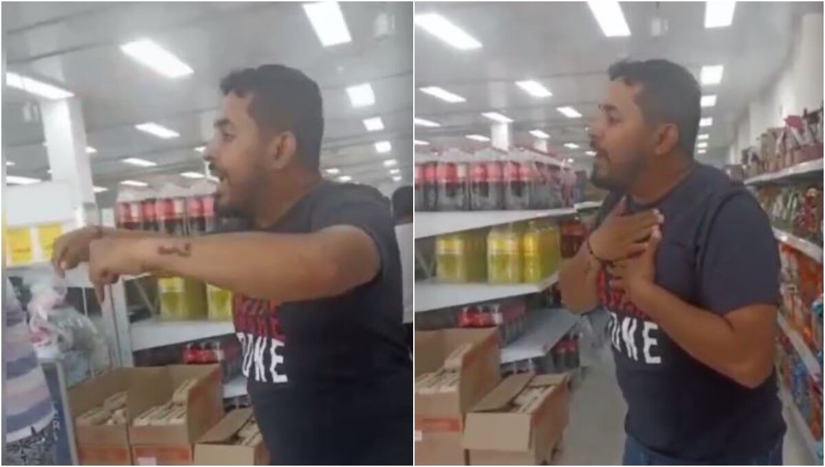 Una singular escena se registró dentro de un reconocido almacén de cadena en la ciudad de Cartagena en donde un indignado hombre señaló la infidelidad que su esposa, la administradora del negocio.