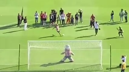 Resulta que en una de las actividades programadas, Quintero tuvo el “reto” de anotarle gol a la mascota del equipo en su acto inaugural, conocido como ‘Willy’.