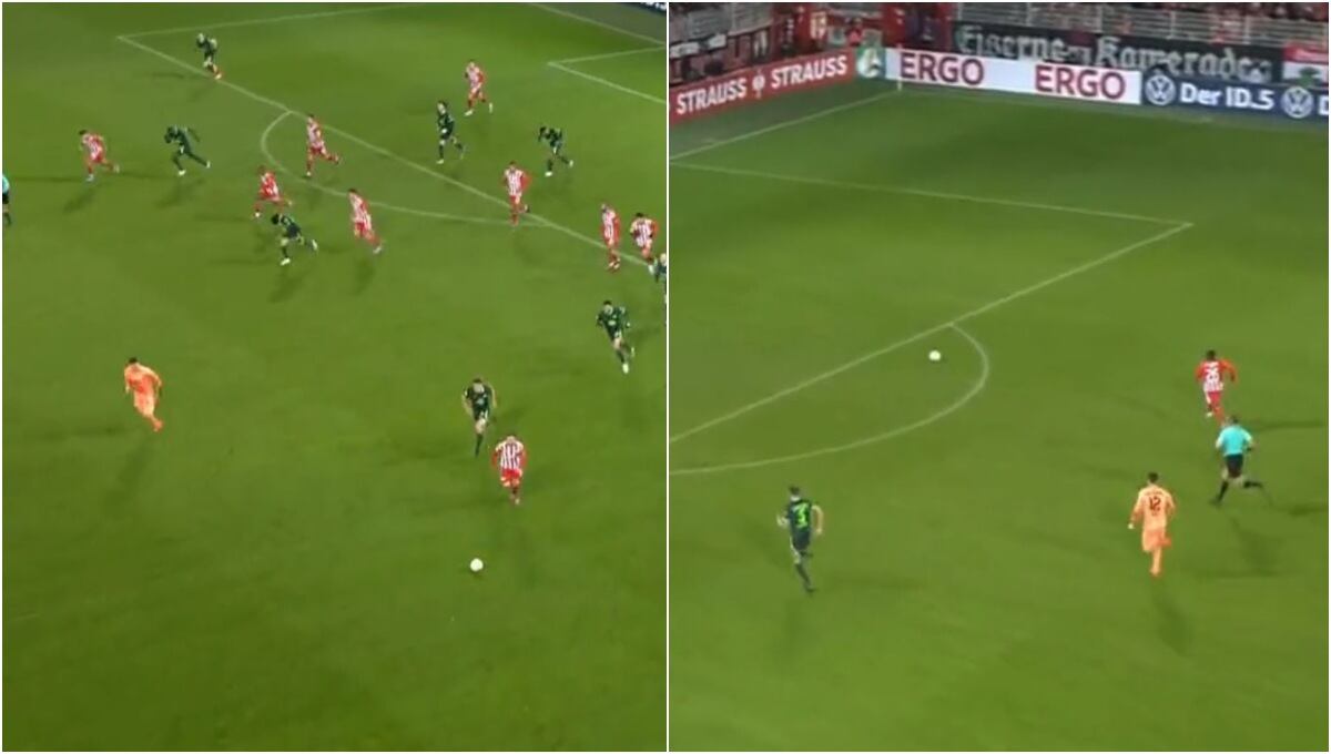 La jugada se dio en el tiempo de adición del partido de la copa de Alemania en el que el Union Berlin se impuso 2-1 al Wolfsburg y avanzó a la siguiente ronda.