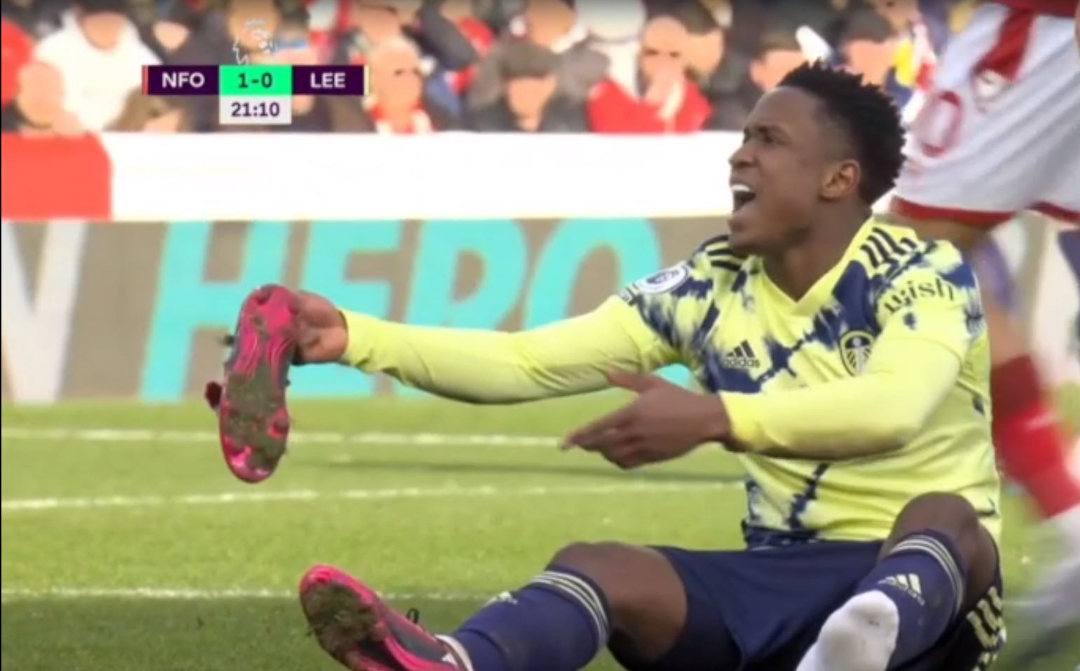 El colombiano Luis Sinisterra sintió el rigor de sus rivales en la Premier League con tanta intensidad que hasta uno de sus guayos le rompieron de la fuerte entrada que le metieron.
