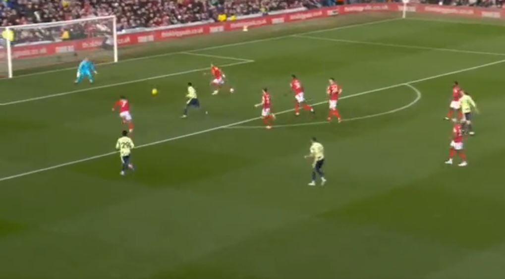 La acción se dio en medio de la jornada 22 en el duelo en el que el equipo del colombiano, el Leeds United visitó al Nottingham Forest en un duelo clave pensando en la permanencia.