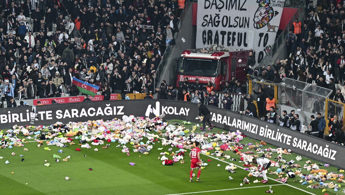 El encuentro entre el Besiktas y el Antalyaspor, de la vigésima segunda jornada de la liga turca, tuvo que estar parado unos minutos al inicio debido a la tremenda lluvia de muñecos y peluches lanzados desde la grada para los niños afectados por los terremotos que asolaron parte de Turquía.