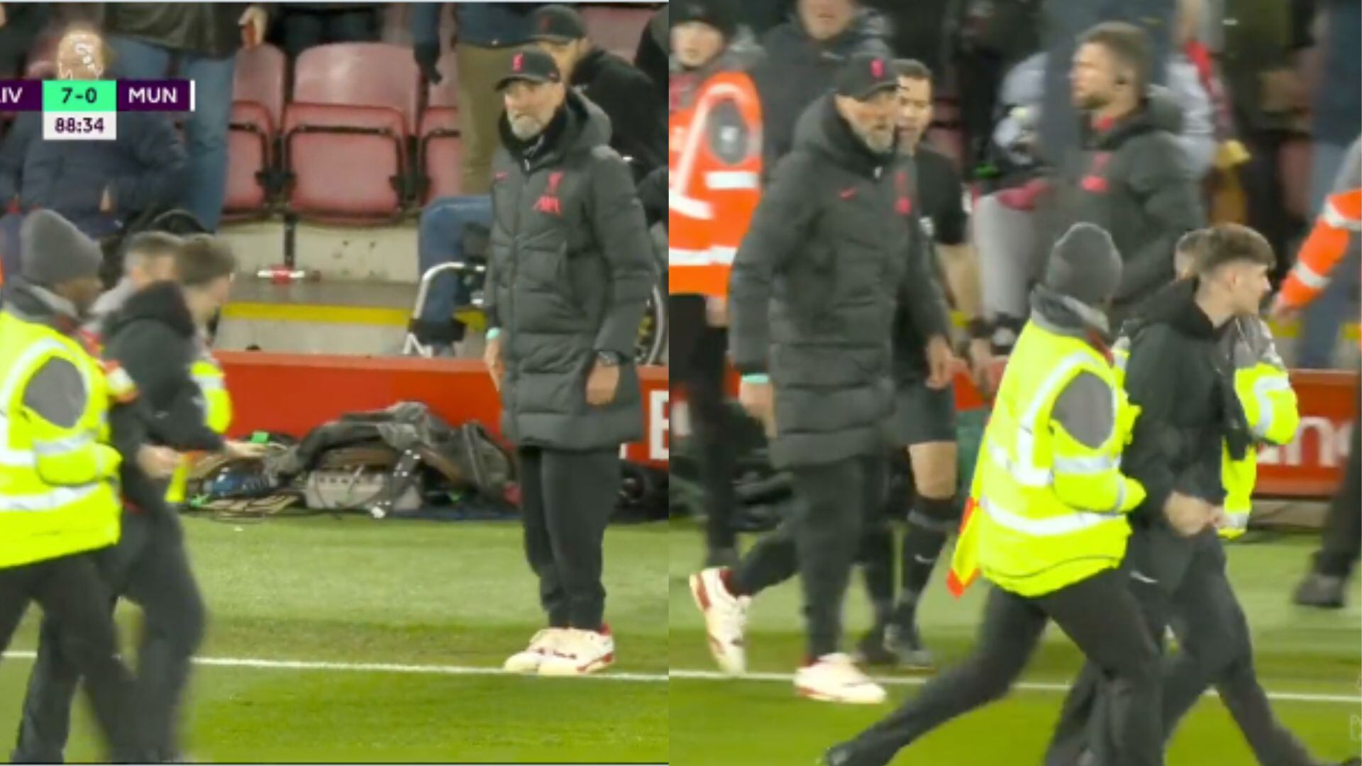 Resulta que un aficionado de su conjunto, ingresó al terreno de juego y por supuesto, las autoridades lograron retenerlo y sacarlo de la cancha. Mientras era retirado del césped de Anfield, Klopp se dejó ver enfurecido y en las imágenes de la televisión se alcanzó a ver cómo reprendía a este fanático del Liverpool, quien casi se mete en la celebración del gol y al parecer, habría hecho que Andrew Robertson se lastimara.
