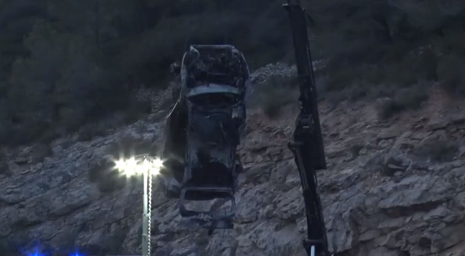Se investigan las causas del accidente donde el coche con tres menores dentro ha caído por el barranco y se ha incendiado.