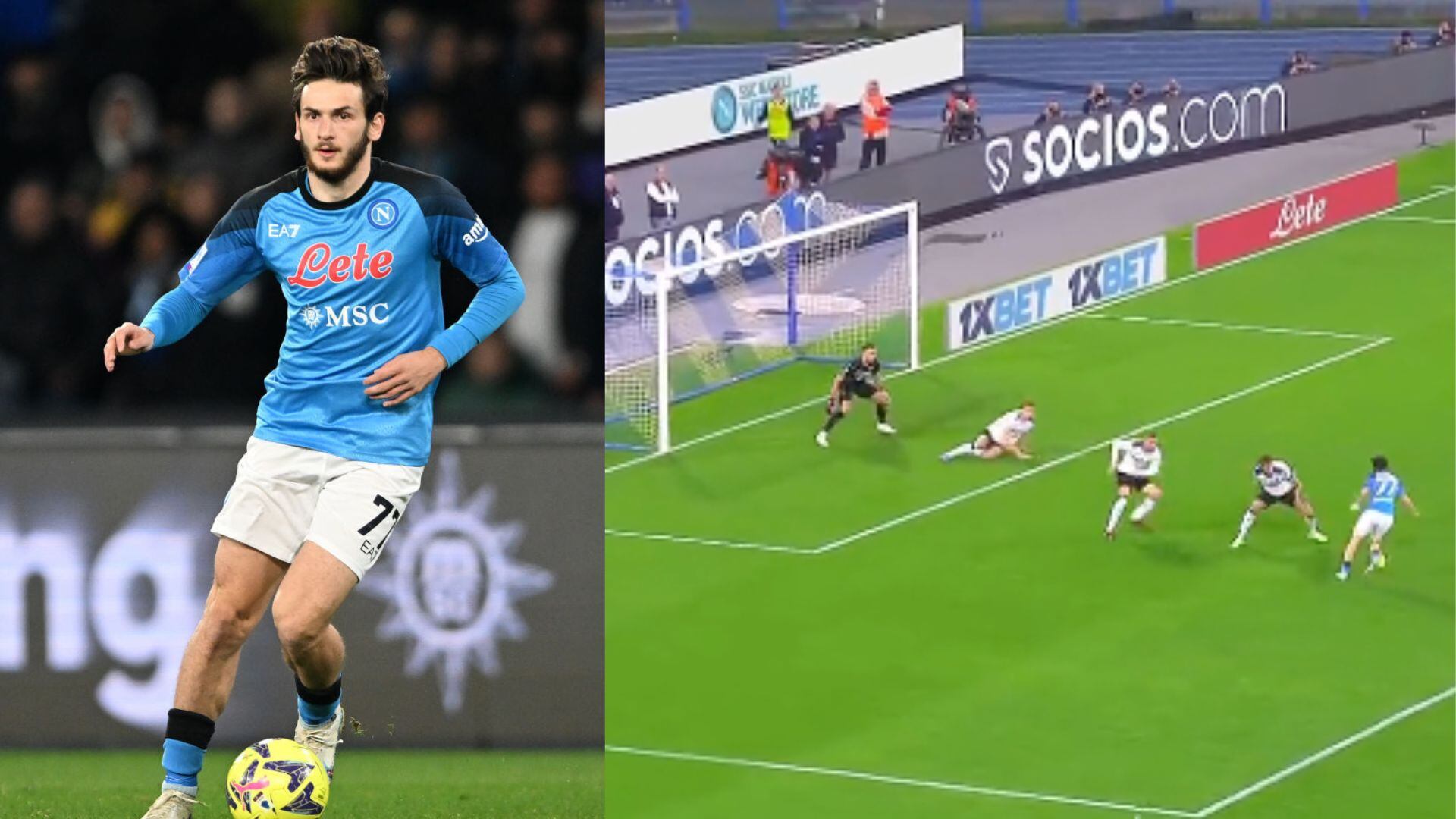 ‘Kvaradona’, como ya muchos le dicen, recibió el balón de Osimhen al borde del área rival y tras hacer tres enganches (dos hacia adentro y una hacia afuera) y desparramar a toda la defensa del Atalanta, logró vulnerar el arco defendido por Juan Musso para darle la ventaja a su equipo.