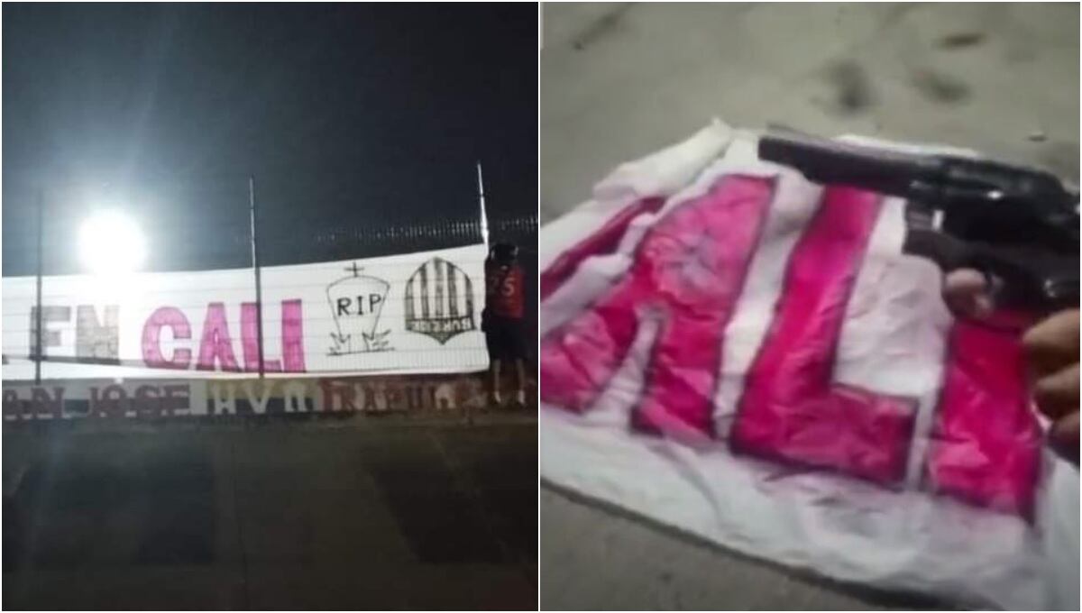 Esa misma pancarta fue bajada por algunos aficionados del cuadro Albirrojo que hicieron un video, revolver en mano, amenazando a un hincha de América que habría sido el encargado de colocarla en el lugar.