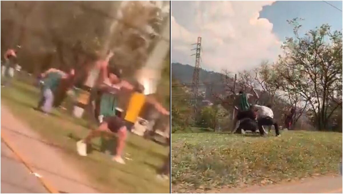 Barristas de Nacional y Medellín protagonizaron una lamentable escena al protagonizar una pelea con machetes, piedras y hasta botellas que se lanzaron en el marco del clásico antioqueño.