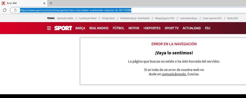 En los buscadores todavía aparece la nota, pero al ingresar, no carga la misma y marca: “¡Vaya lo sentimos! La página que buscas no existe o ha sido borrada del servidor”.