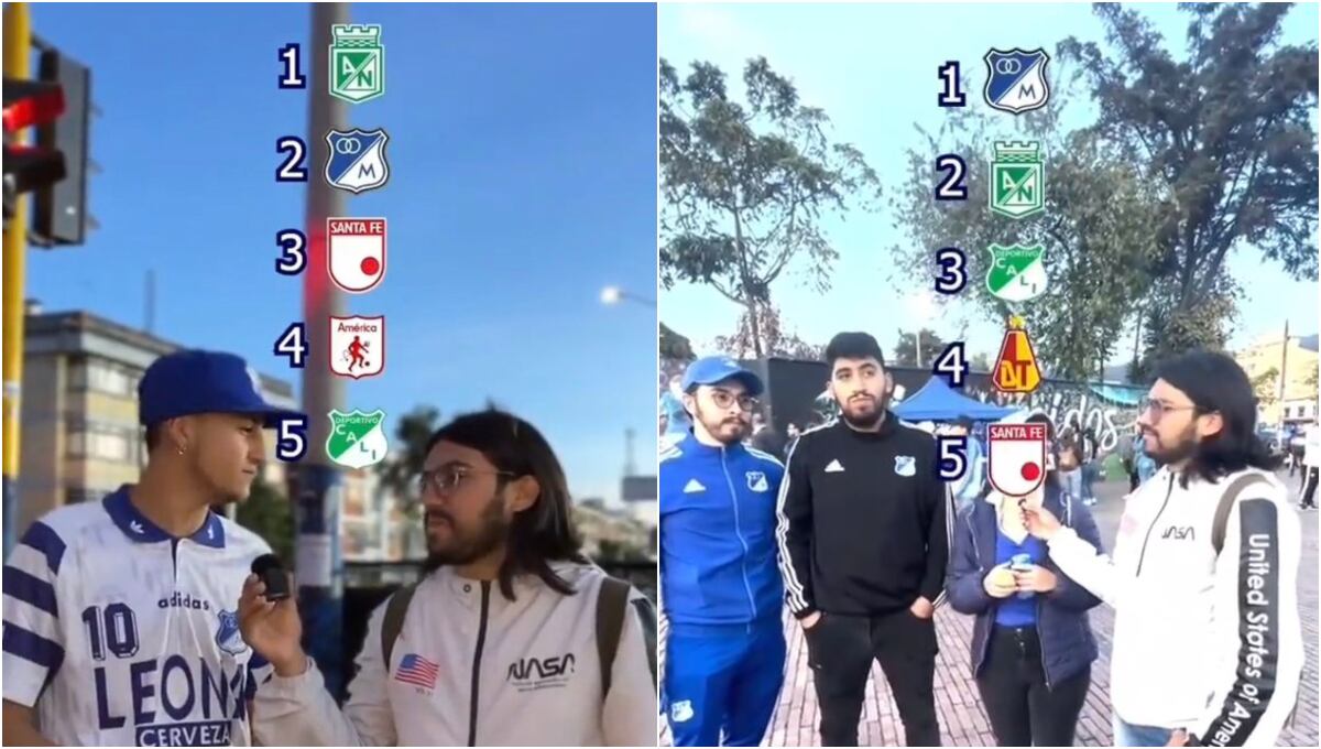 El joven no lo dudó y dijo: “Nacional, por las copas, Millonarios, Santa Fe, América y Cali”. Dicha afirmación ha generado gran eco y debate en las redes sociales en cuentas dedicadas al fútbol colombiano.