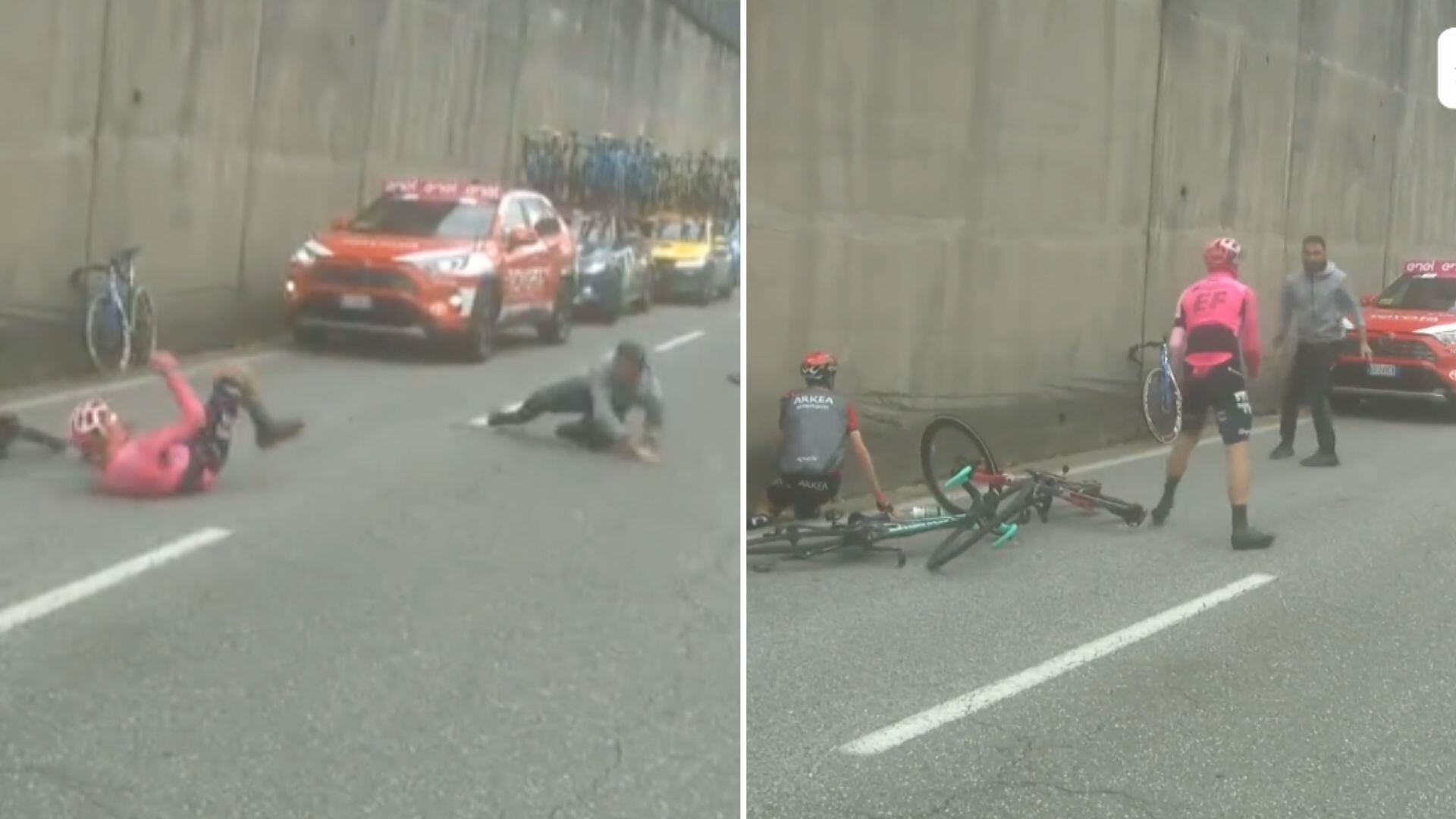 Ciclista enfureció contra auxiliar de otro equipo que lo hizo caer
