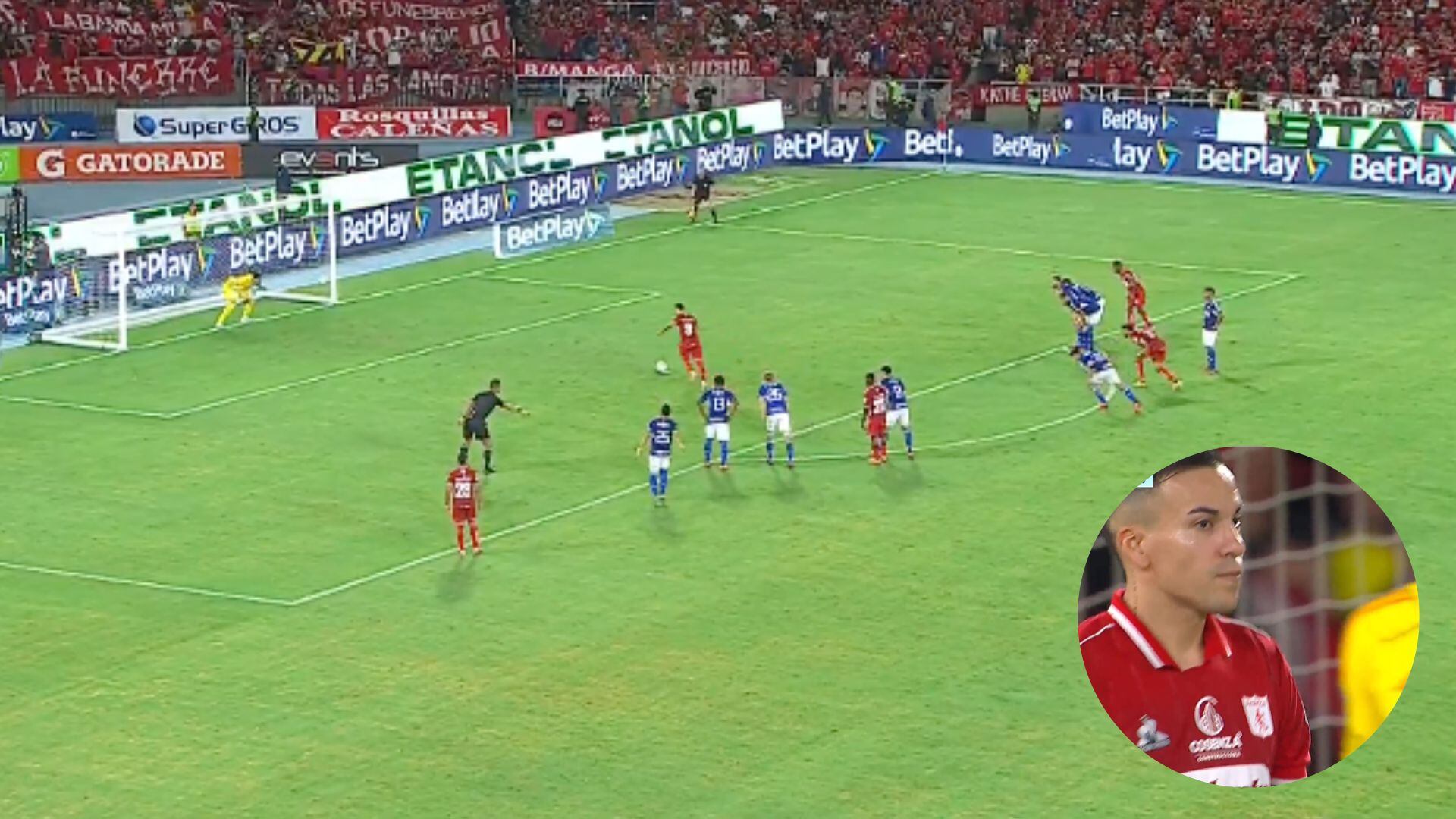 Una imagen curiosa se dio en medio del cobro del atacante de la ‘Mechita’. Por supuesto, en el Pascual Guerrero los aficionados esperaban que se diera el anhelado gol y tenían una oportunidad inmejorable.