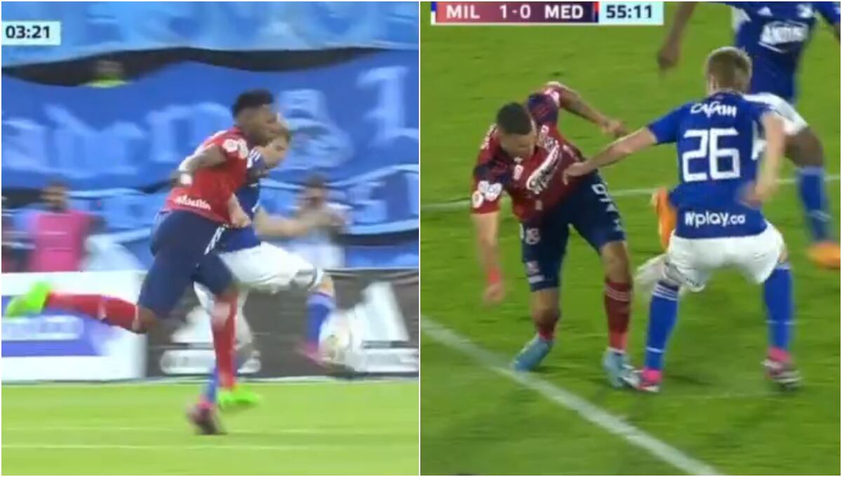 La primera de ellas se dio en los primeros minutos del juego cuando Andrés Llinás sujetó dentro del área de manera prolongada al atacante Jorge Cabezas Hurtado. El árbitro Carlos Betancur no sancionó nada y desde el VAR tampoco lo llamaron.