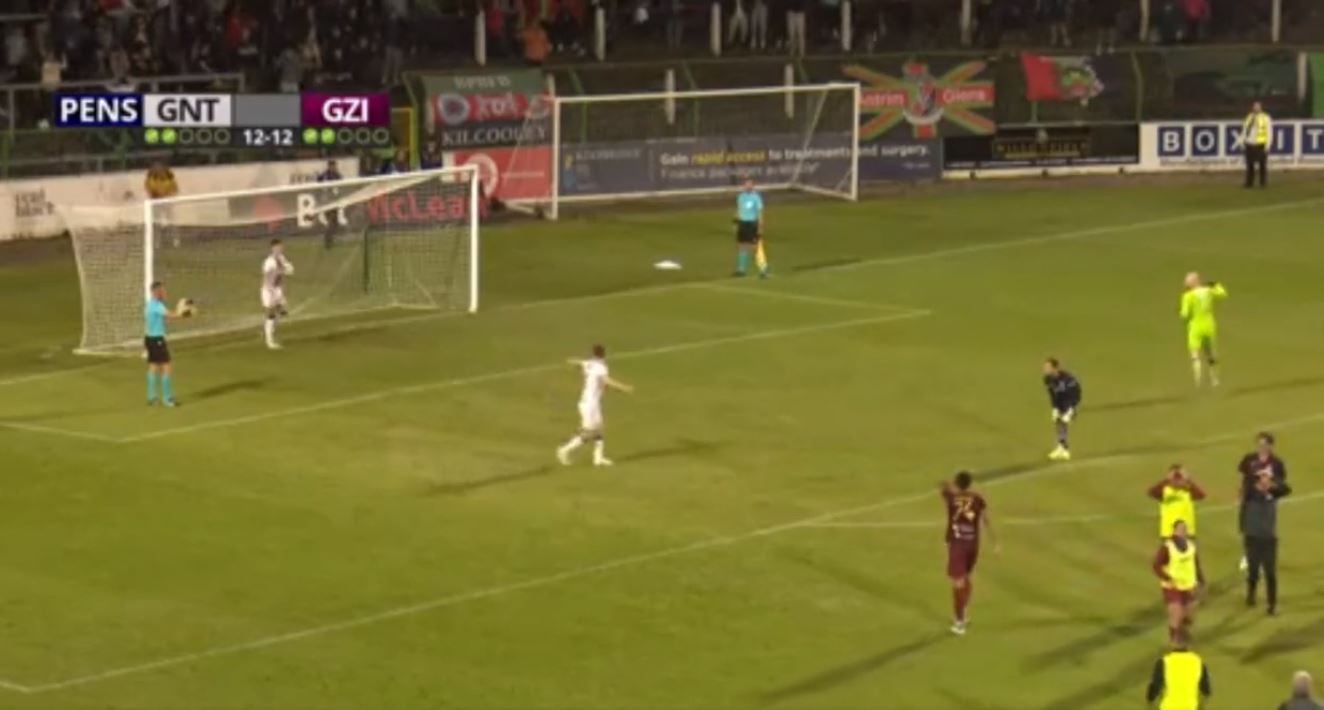 Sin embargo, la escena surrealista ocurrió en el cobro número 12 del Glentoran cuando Aaron McCarey vino al cobro. El portero del equipo rival detuvo el penal con una gran atajada al costado izquierdo y su reacción fue de euforia total. Salió corriendo hacia el centro del campo, creyendo que se liquidaba la serie, pero lo que nadie esperaba es lo que ocurrió a continuación.