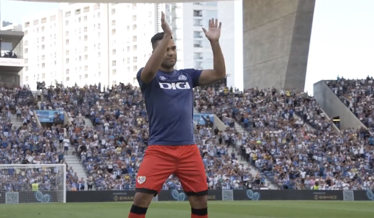 El delantero colombiano Radamel Falcao ha sido homenajeado este sábado en Portugal antes del partido entre el Rayo Vallecano y el Oporto, que fue su primer equipo en Europa y al que defendió durante dos exitosas temporadas.