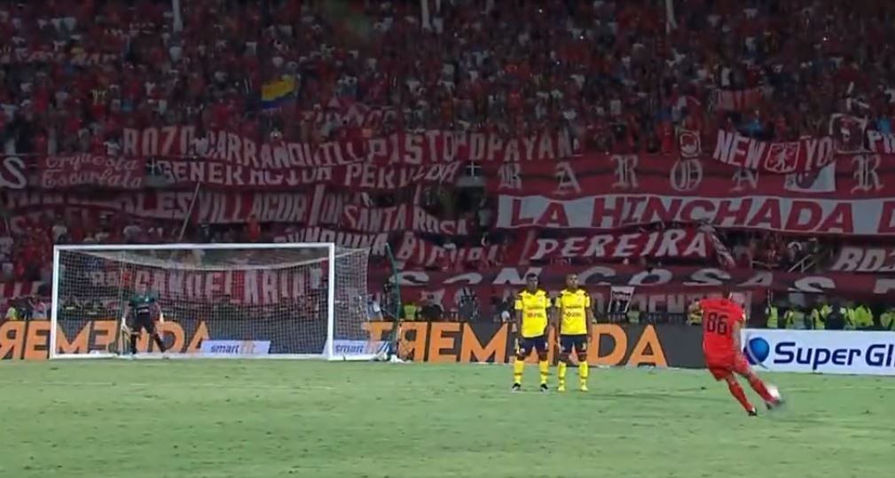 Fue en el minuto 75 que llegó un tiro libre a favor del cuadro Escarlata que fue cobrado desde un costado por Edwin Cardona que engañó al portero Diego Martínez, que pensó que saldría un centro, pero el jugador, recién llegado de Argentina, disparó al arco.