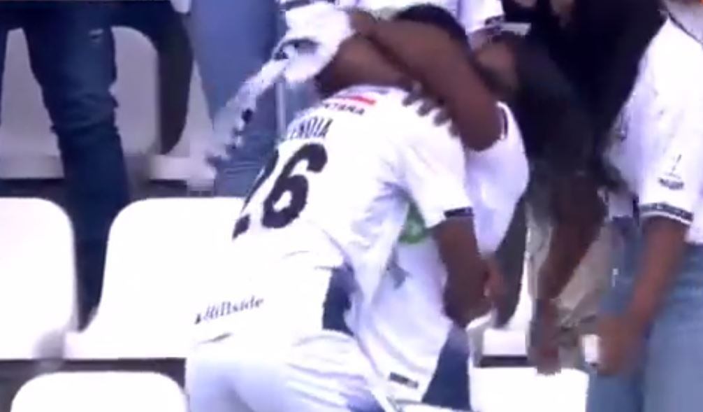 En una reacción llena de emoción, el juvenil corrió como loco hacia la tribuna, pasando por alto a su entrenador, Pedro Sarmiento, subió las escaleras de acceso, saltó una valla y se metió a las graderías en donde corrió varios metros hasta llegar a los brazos de su madre que le dio tremendo abrazo.