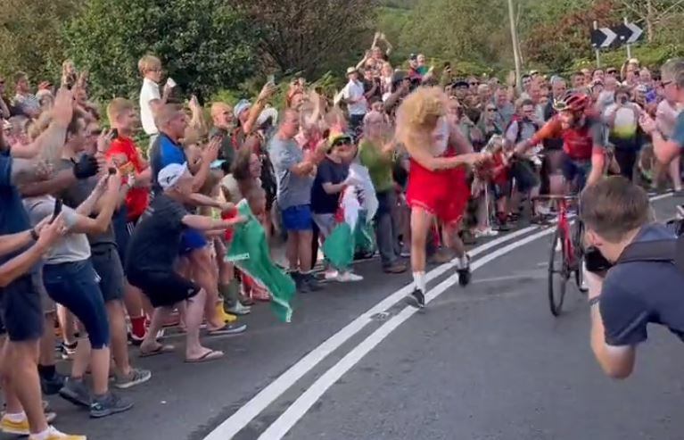 Mientras el pedalista británico realizaba uno de los ascensos, ya sin mayores exigencias, recibió una cerveza de parte de un aficionado que corría a su lado.