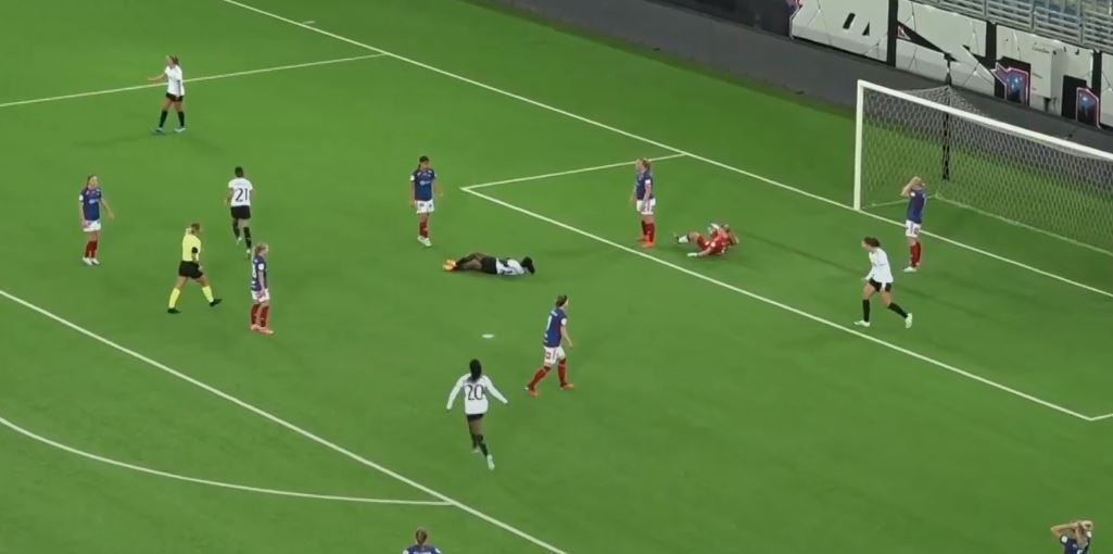 Sin embargo, en medio del agarrón, el balón le dio a Linda Caicedo y le quedó servido a su compañera de equipo, Sandie Toletti, que de inmediato remató y la pelota se fue al fondo de la red para el 1-0 parcial.