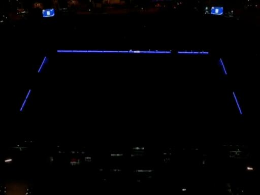 La transmisión de televisión oficial evidenció que tan pronto como el árbitro decretó el final del encuentro dejaron todo en penumbras.