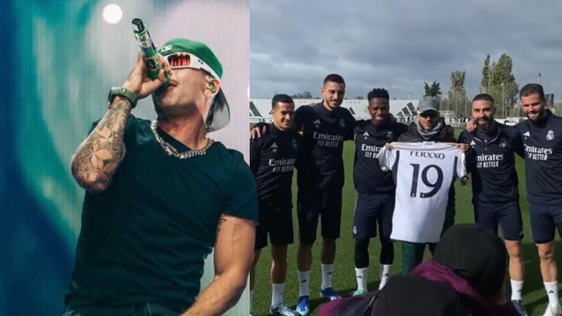 La música de Feid lo llevó hasta conocer al Real Madrid, en donde lo recibieron con una camiseta que lleva un dorsal diseñado para Feid y además posaron juntos para una foto.